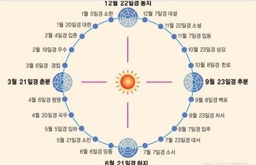3. 지구 일 년 30일☓12달=1년(360일) 현재 365일은 지축이 23.5도 기울기 때문에 나타나는 현상임.